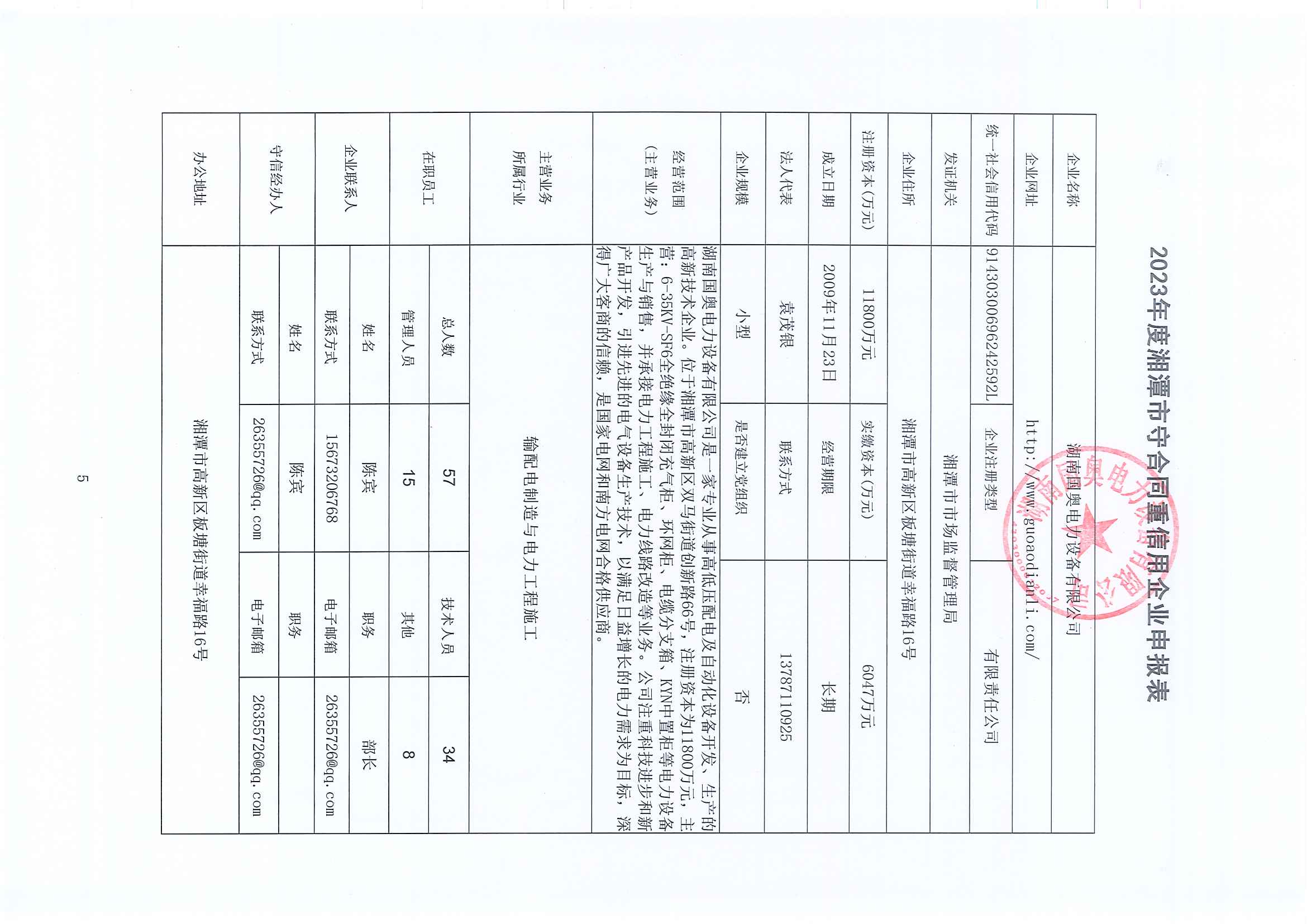 本企業(yè)根據(jù)《湘潭市守合同重信用企業(yè)申報規(guī)定》等編制 2023 年度企業(yè)信用報告書,并保證本報告書內(nèi)容真實、準確、完整。