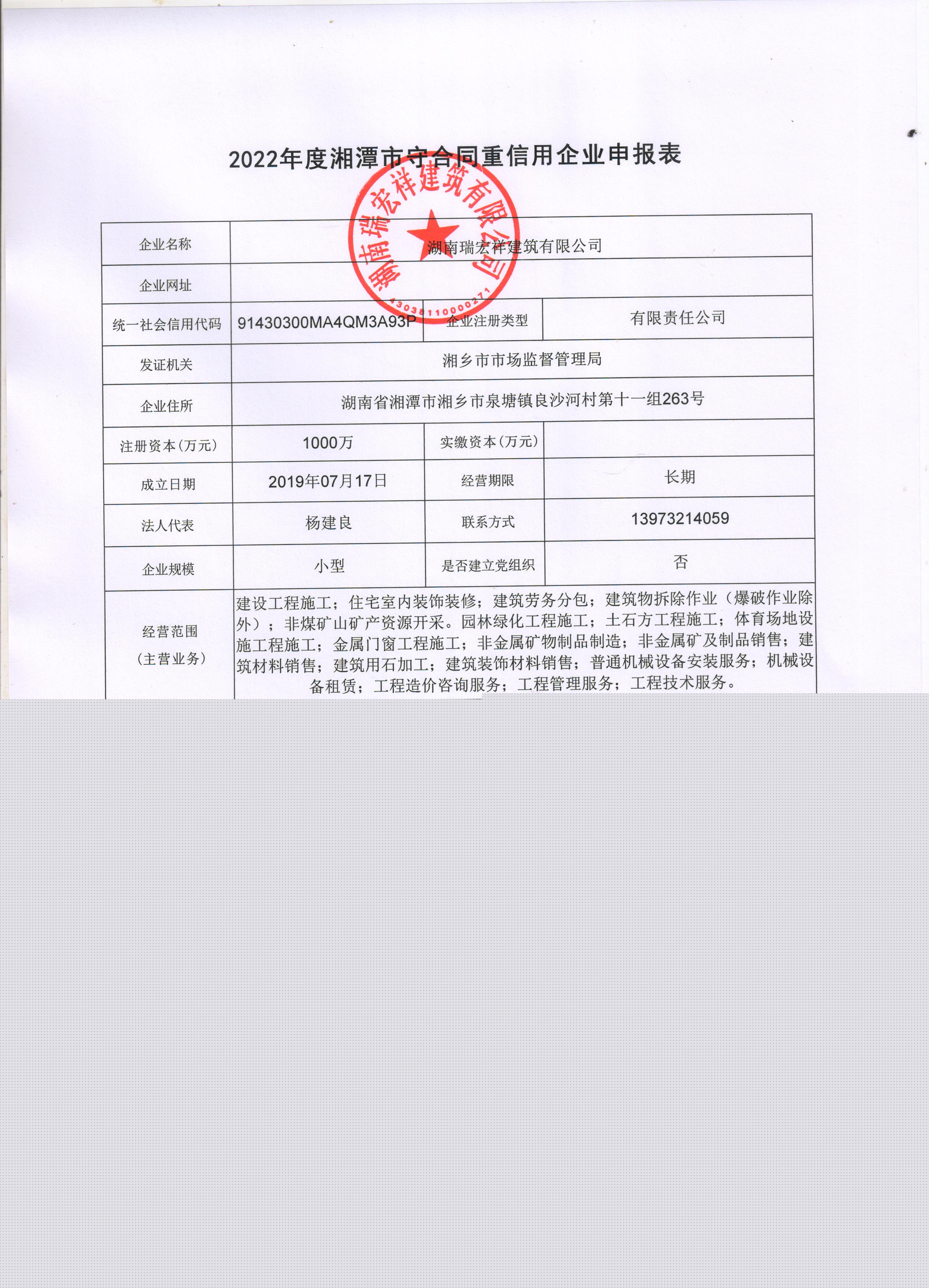 本企業(yè)根據(jù)《湘潭市守合同重信用企業(yè)申報規(guī)定》等編制 2022 年度企業(yè)信用報告書,并保證本報告書內(nèi)容真實(shí)、準(zhǔn)確、完整。