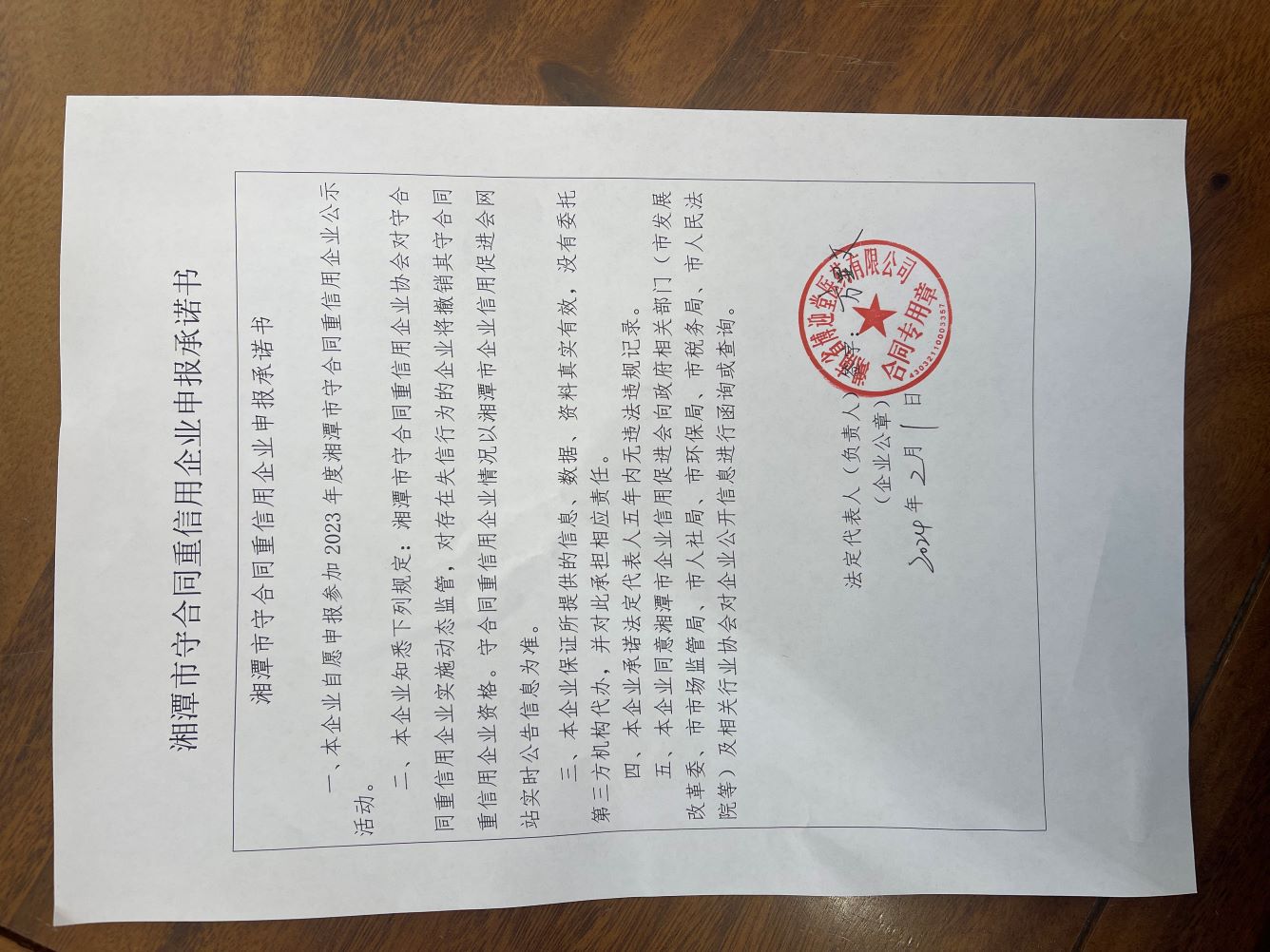 本企業(yè)根據(jù)《湘潭市守合同重信用企業(yè)申報規(guī)定》等編制 2023 年度企業(yè)信用報告書,并保證本報告書內(nèi)容真實、準確、完整。
