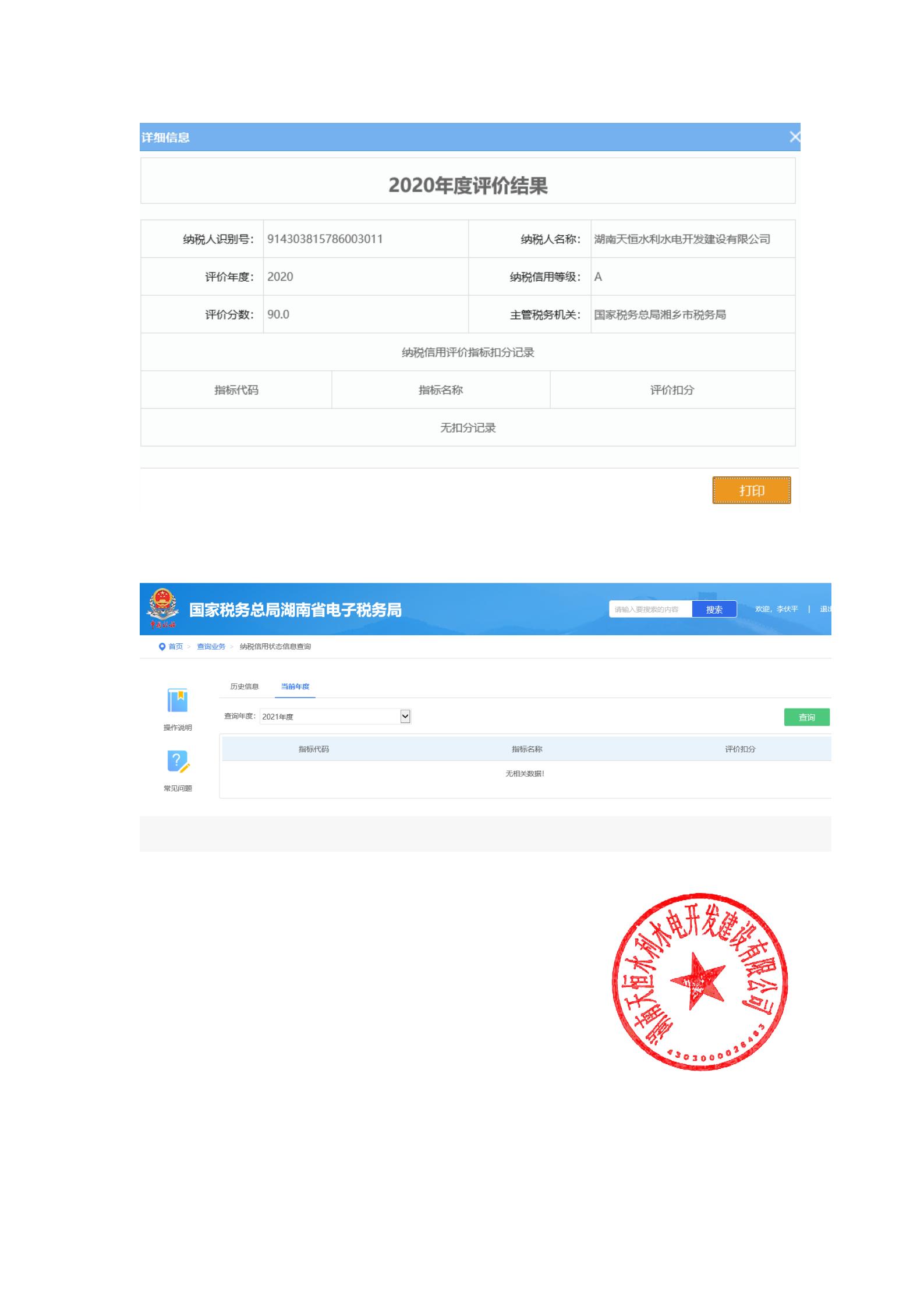 企業(yè)納稅信用等級報告: