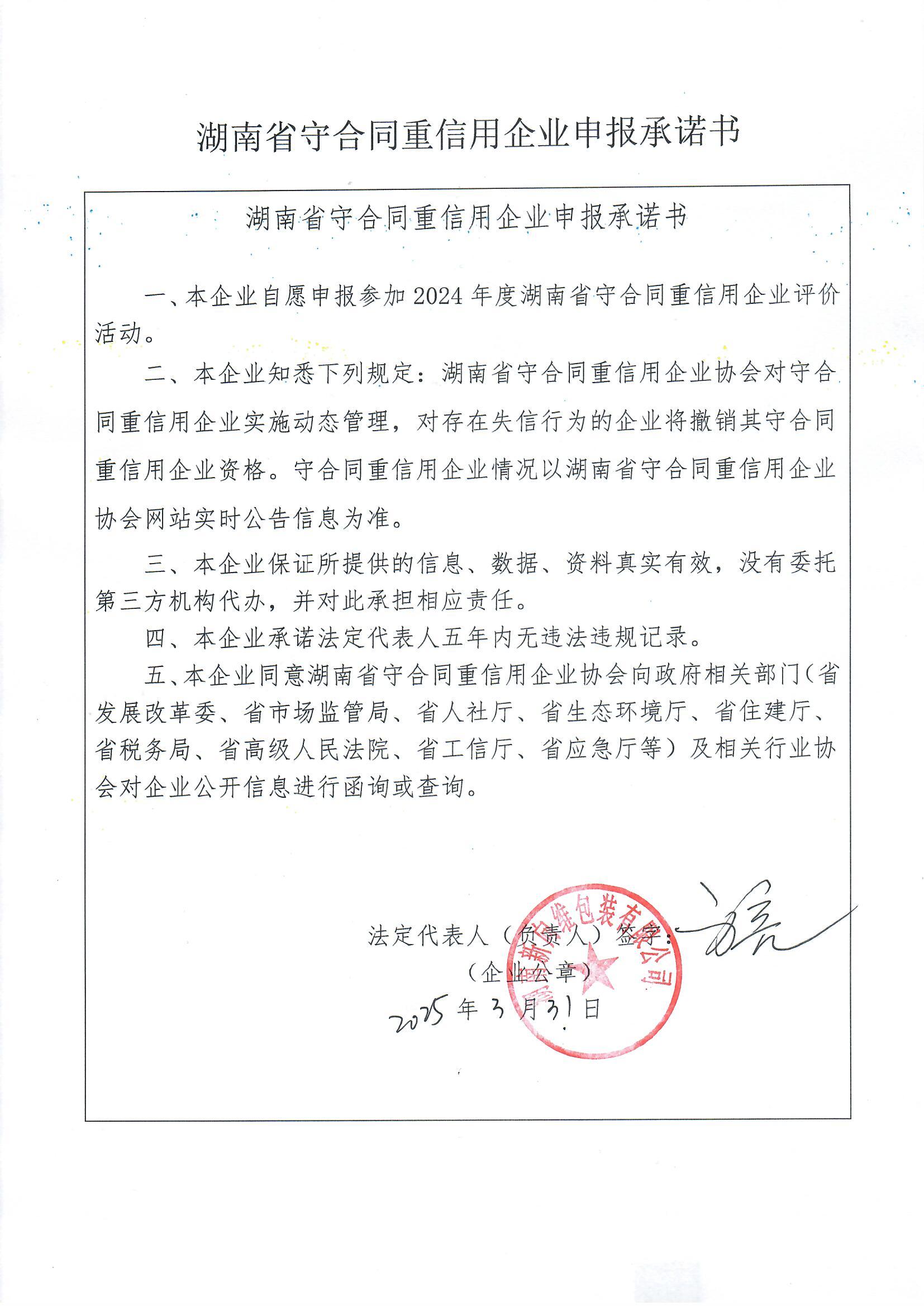 本企業(yè)根據(jù)《湘潭市守合同重信用企業(yè)申報(bào)規(guī)定》等編制 2024 年度企業(yè)信用報(bào)告書,并保證本報(bào)告書內(nèi)容真實(shí)、準(zhǔn)確、完整。