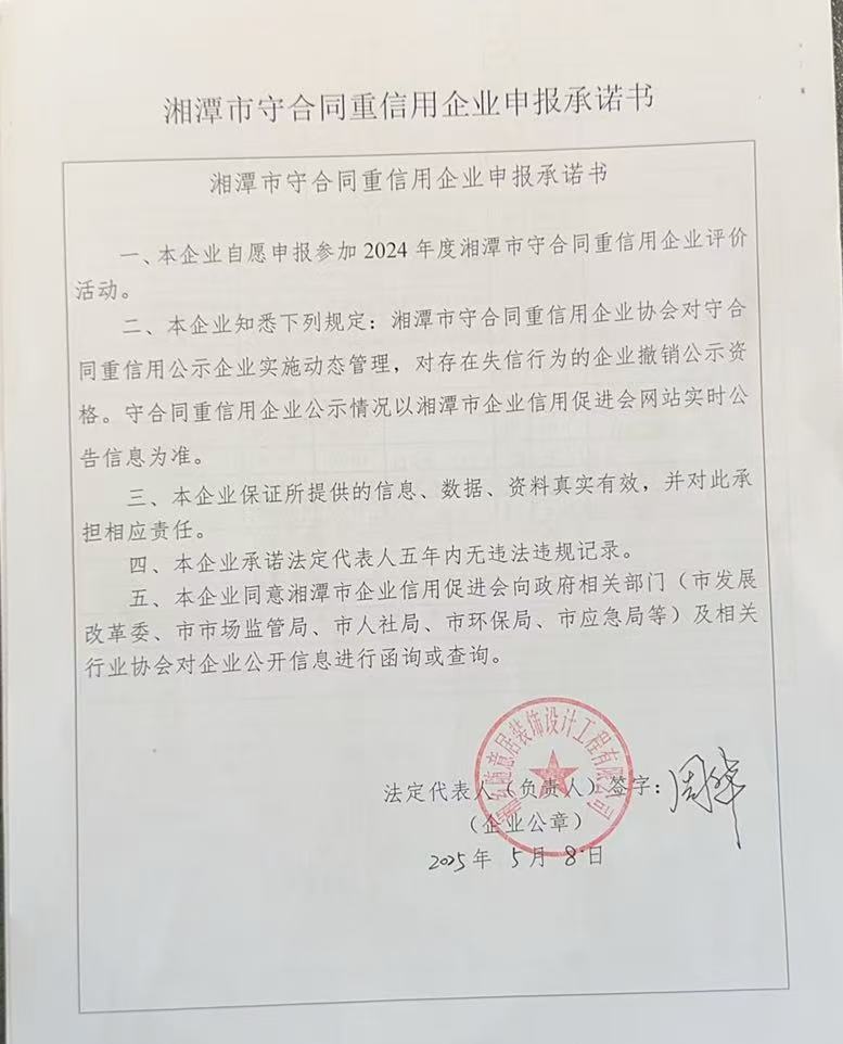 本企業(yè)根據(jù)《湘潭市守合同重信用企業(yè)申報(bào)規(guī)定》等編制 2024 年度企業(yè)信用報(bào)告書,并保證本報(bào)告書內(nèi)容真實(shí)、準(zhǔn)確、完整。